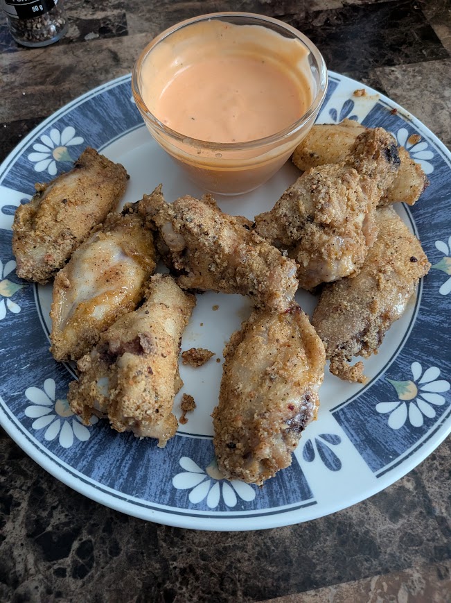 Please note differences in ingredient amounts when making a version of this recipe, for your self. Doing the wings this way will make them come out crispy and crunchy!